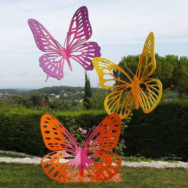 The Beautiful Coloured Butterflies stand bright and colourful. A brilliant display for a garden, park or other outdoor areas and these can be customised in size and colour. We will never produce the same colour so the design will be a one off in your size and colour.